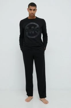 Ανδρικά Μακρυμάνικα Βαμβακερή μπλούζα με μακριά μανίκια Michael Kors μαύρο